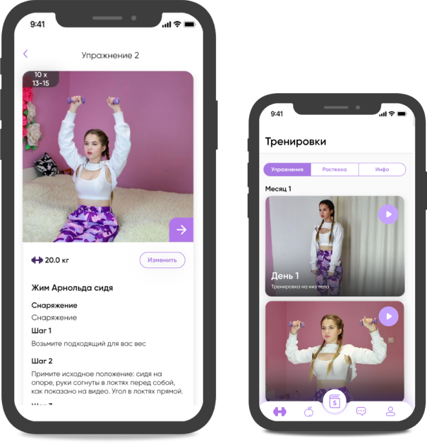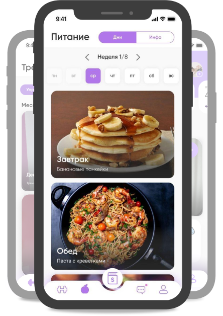 За вас уже все сделали: составили планы питания, программы тренировок и добавил чат для общения, чтобы тренер мог направлять вас и мотивировать!