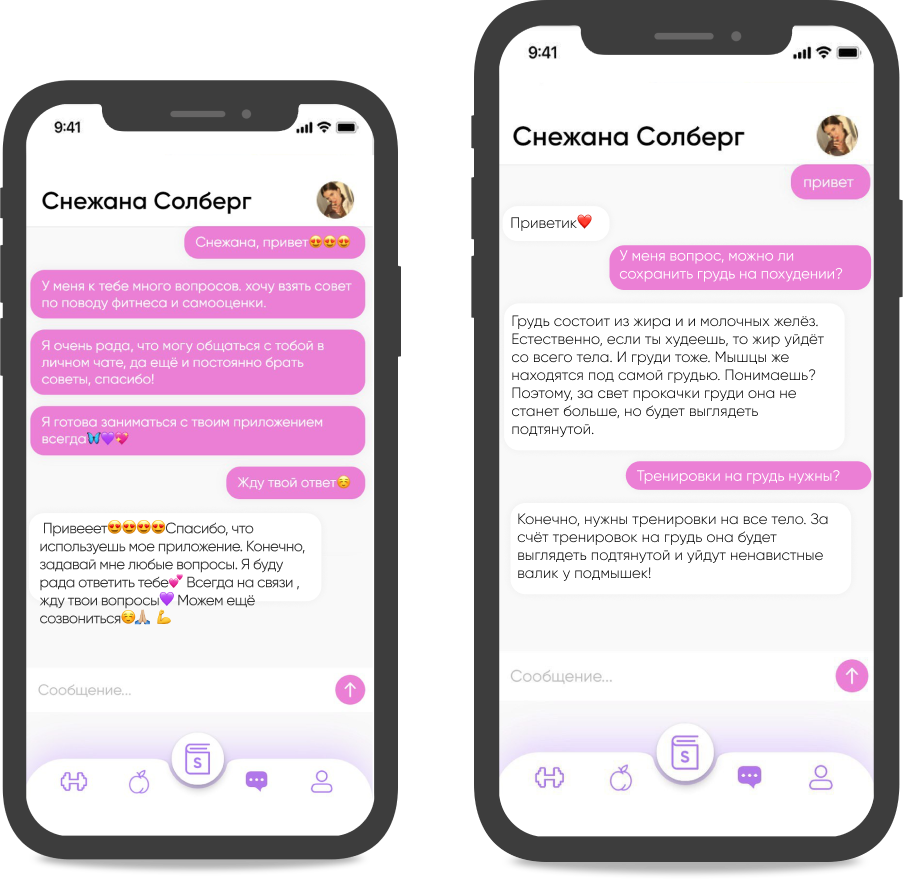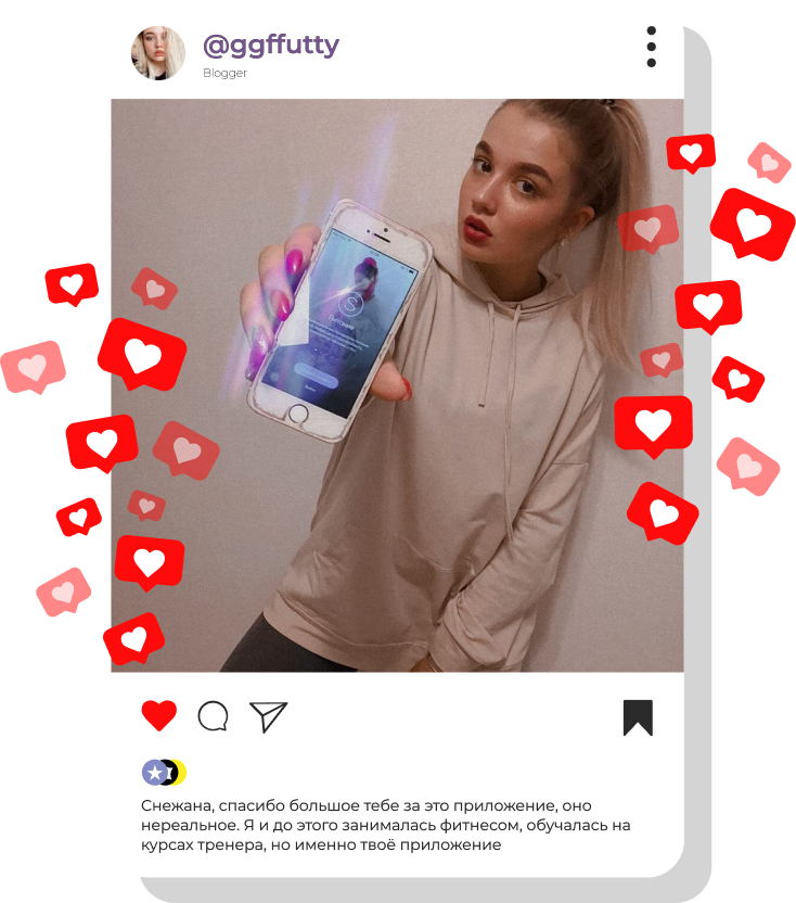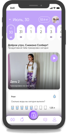 Снежана, спасибо большое тебе за это приложение, оно нереальное. Я и до этого занималась фитнесом, обучалась на курсах тренера, но именно твоё приложение меня смотивировало!!!! Как блогер, уже посоветовала и своей аудитории приложение SolbergFit.
