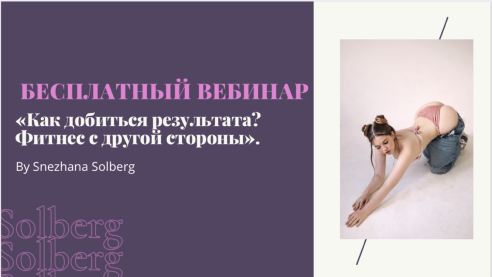 Я – Снежана Солберг - фитнес-гуру, дипломированный тренер, начинающая бизнесгерл и создатель приложения Solberg Fit. Я являюсь большой мотивацией для тысячи девушек, которые меняются вместе со мной.